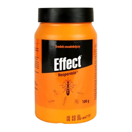Effect Neopermin+ to proszek owadobójczy, przeznaczony do zwalczania mrówek, karaluchów i muchy, bytujących w domu oraz pomieszczeniach higieny sanitarnej.