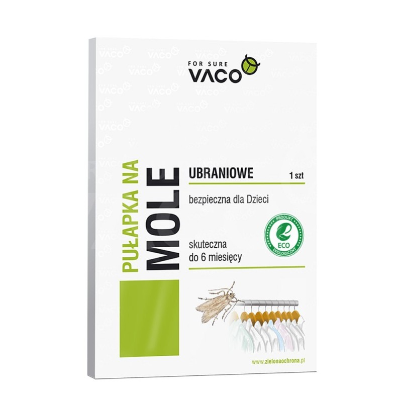 Pułapka na mole ubraniowe. Skutecznie likwiduje szkodniki w szafach, garderobach, sklepach i magazynach z odzieżą. Pułapka to produkt oparty na działaniu feromonu, który wabi mole i zatrzymuję je na powierzchni lepowej.