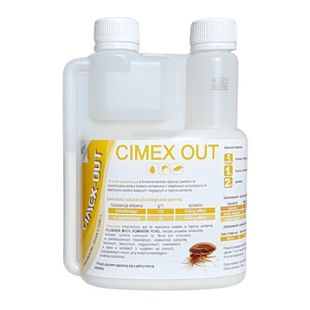 Cimex-Out jest to preparat owadobójczy w formie koncentratu stężonej zawiesiny do rozcieńczania wodą. Produkt o działaniu kontaktowym i żołądkowym przeznaczony do zwalczania owadów latających i biegających w higienie sanitarnej.