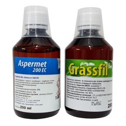 Zwalczanie komarów i kleszczy na powierzchniach zewnętrznych: stosować oprysk w proporcji 100 ml Aspermetu i 100 ml Grasfilu (adjuwant) w 10 litrach wody. Powstała ciecz robocza wystarcza na 200m2.