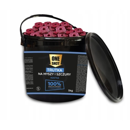 ONE SHOT na myszy i szczury kostka 5kg to doskonały wybór dla osób szukających preparatu na myszy i środka na szczury do profesjonalnych zastosowań na większą skalę. Dzięki większej gramaturze, trutka ta jest idealna do użycia w dużych magazynach, restauracjach czy zakładach produkcyjnych. Zawartość bromadiolonu gwarantuje skuteczność i pewność działania, nawet w przypadku dużych populacji gryzoni.