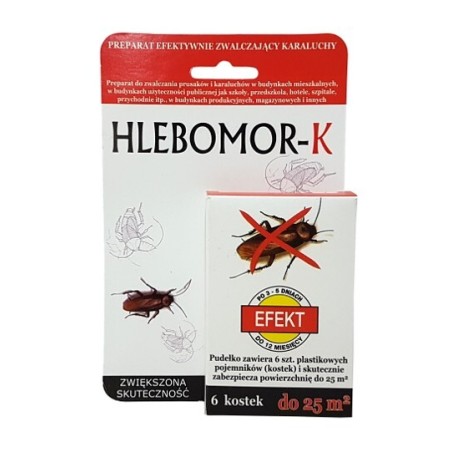 Hlebomor K jest to preparat do skutecznego i długotrwałego zwalczania prusaków i karaluchów w budynkach mieszkalnych, użyteczności publicznej takich jak szkoły, przedszkola, hotele, szpitale, przychodnie itp., w budynkach produkcyjnych, magazynowych i innych. Hlebomor K jest gotową do użycia trutką w plastikowych pojemnikach (kostkach). Działa na owady drogą pokarmową. Preparat nie jest lotny i nie wydziela do otoczenia żadnej substancji. Forma kostki nie pozwala na bezpośredni kontakt z trutką. Przy stosowaniu preparatu zgodnie z przeznaczeniem i zaleceniami producenta nie stwarza on zagrożenia dla zdrowia ludzi i zwierząt.