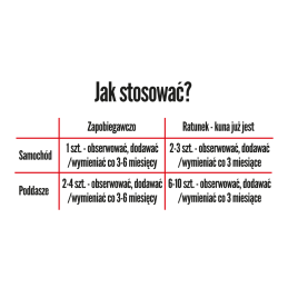W przypadku ochrony poddasza, należy umieścić w pomieszczeniu odpowiednią liczbę sztuk produktu, w zależności od metrażu.