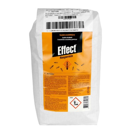 Effect Neopermin to proszek owadobójczy, przeznaczony do zwalczania mrówek, karaluchów i muchy, bytujących w domu oraz pomieszczeniach higieny sanitarnej.