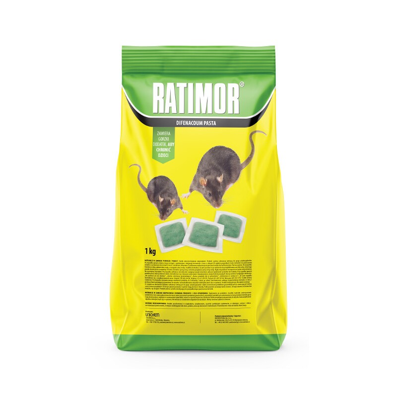 Ratimor Difenacoum to pasta w formie saszetek skutecznie zwalcza myszy i szczury.